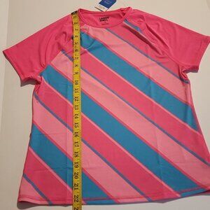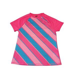 New Lands' End rash guard girls sz XL 14 - 16 pink blue short sleeve