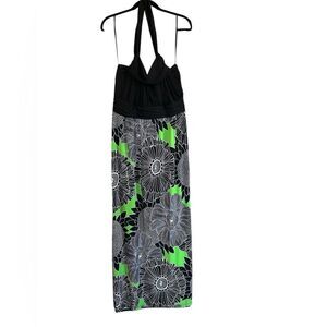New Lane Bryant Black Green Floral Halter Style Backless Maxi Dress 14/16