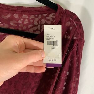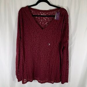 New Lane Bryant Blouse Womens 18 20 Red Semi Sheer Long Sleeve Vneck Lightweight