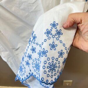 Details: Eyelet embroidery, peplum hem, sleeveless
