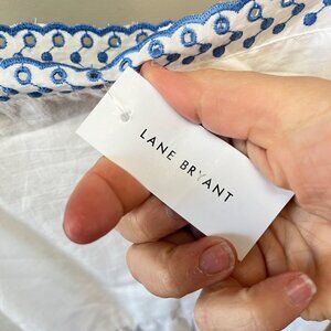 Fresh, feminine, and flattering—this NEW Lane Bryant Square-Neck Peplum Eyelet Tank is the perfect warm-weather staple. Designed with a structured square neckline and delicate eyelet detailing, this sleeveless top offers a breezy feel with a polished finish.