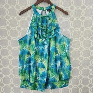 New Lane Bryant Women's 22/24 Tank Blouse High Neck Printed Back Keyhole