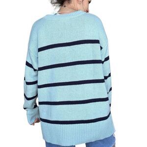 New Lane Bryant Blue Striped Boxy Pullover Chunky Sweater Crewneck Size 18 20