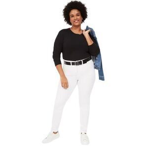 Lane Bryant signature fit white skinny jeans with 5 pox and belt loops. Waist is a stretchy 44”, inseam 29” and rise 13”. Brand new with no tags attached.