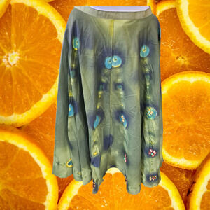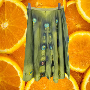 New Lapis Green 100% Cotton Maxi Long Skirt with beaded flowers.