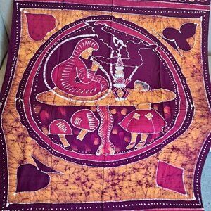 Brand New "Alice in Wonderland and Mushroom Caterpillar" Red / Orange Lightweight Cotton Tapestry