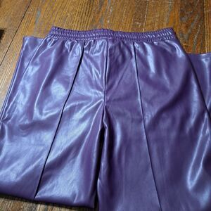 New Large Badgley Mischka Aubergine Purple Vegan Faux Leather Wide LegPants NWT