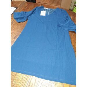 New Large Belongsci Blue Bell Sleeve VNeck Shift Mini Dress NWT