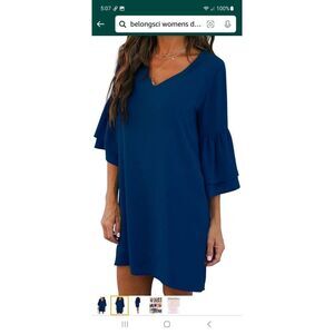 New With Tags Attached Women's Size Large Belongsci Blue Bell Sleeve V-Neck Shift Mini Dress Perfect for Holidays Christmas New Years Party Weddings Night Out Career Wear.