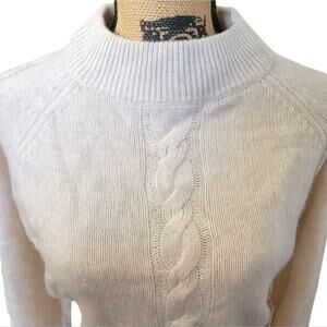 New Large Cashmere Nanette Lepore Cable Knit Cream Mock Turtlw Neck Sweater