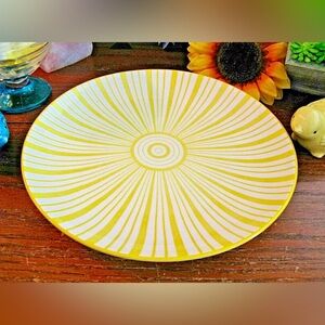 New Large Ceramic Bright Yellow w/ Stripes Coffee Tea Mug Cup & Plate Saucer Set