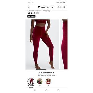 New With Tags Attached Women's Size Large Fabletics Cherry Burst Emma Velour High Waist Leggings- Athletic Athleisure Casual Loungewear Workout Running Training Gym Yoga Night Out