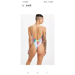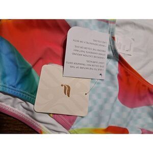 New With Tags Attached Women's Size Large Fabletics Pride Low Back One-Piece Swimsuit Bathing Suit Swimwear Carnival Pattern Cheeky