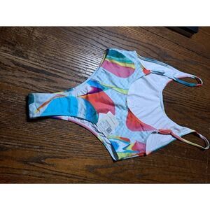 New Large Fabletics Pride Low Back Carnival One Piece Swimsuit Bathing Suit NWT