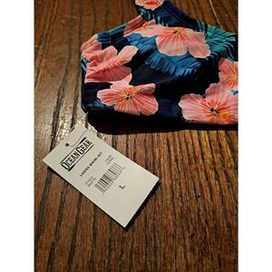 New With Tags Attached Women's Size Large Ocean Gear Pink and Blue Foral Padded Bikini Top with Keyhole Tie Front Swimsuit Swimwear Bathing Suit Top