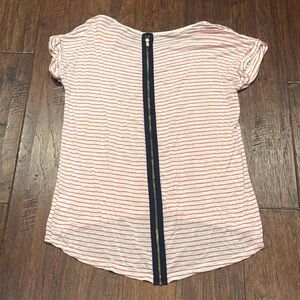 New!! Large PINK ROSE Striped Women's Top - Light Cream with Pink Stripes