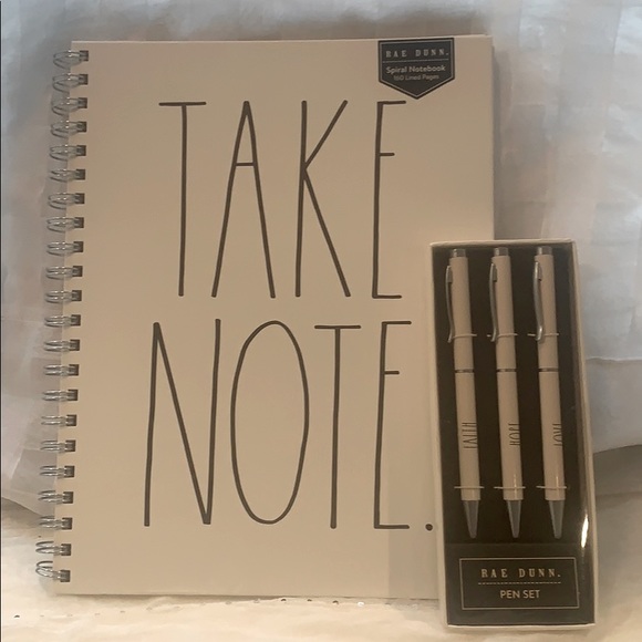 Brand new Rae Dunn notebook, large 8.5” x 11” size, “Take Note”.