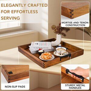 Handcrafted Elegance: Expertly polished for smooth surface and enhanced with mortise-and-tenon joints, this wood tray combines sturdiness and aesthetic appeal; Protective padding on the bottom ensures scratchless furniture surfaces