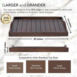 New Large Wooden Serving Tray with Handles 20x14" Decorative Coffee Ottoman Tray