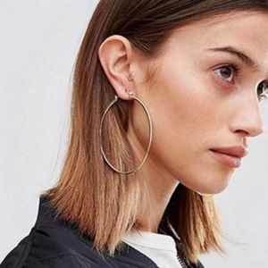 New in packet. Large gold plated hoop earrings. Length and width 8cm (3 inches). Gold plated earrings will be shipped. For pierced ears. Metal type: copper alloy. Imported NWOT. Key words: Punk, statement earrings.