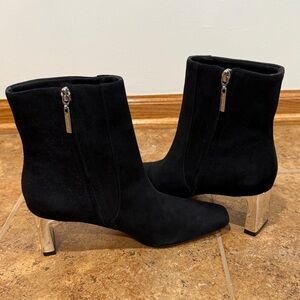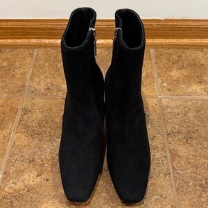 New Larroudé Alexis Bootie Black Suede Silver Heel Sz 7.5 Classic Fall Staple