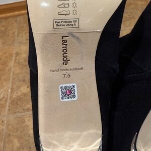 Tags Larroude booties suede black silver heel luxury fall shoes ankle boots sleek chic branded footwear statement shoe dressy fall essential