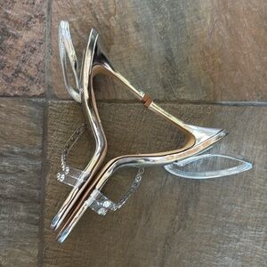 New Larroude Annie Sandal in Silver Specchio with Swarovski Crystals Sz 9 heels
