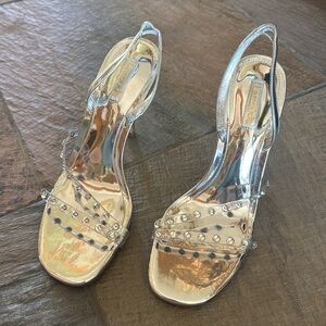 Event gala pageant festive crystal sparkle sparkly wedding party Vegas date night silver metallic shiny Y2K 2000s designer heels sandal sandals luxury