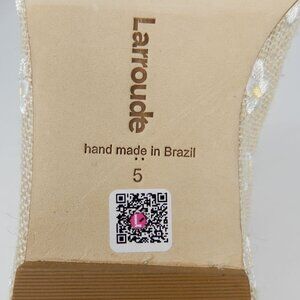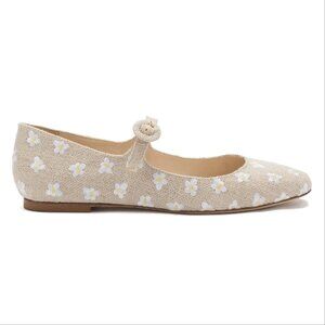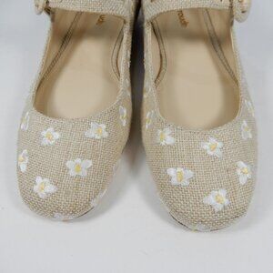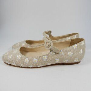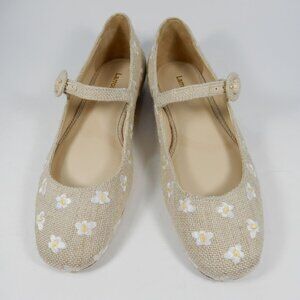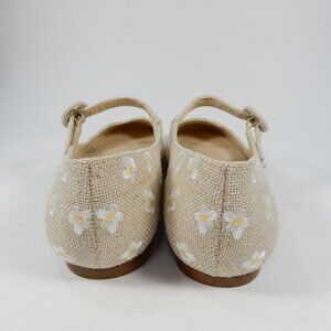 Chic beige flats with white floral pattern. Comfortable and stylish. Perfect for everyday wear.