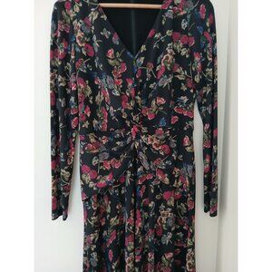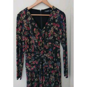 New Lauren Ralph Lauren Surplice Jersey Dress Size 6 Black Floral Midi L/S Work