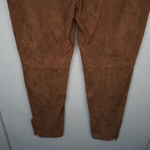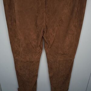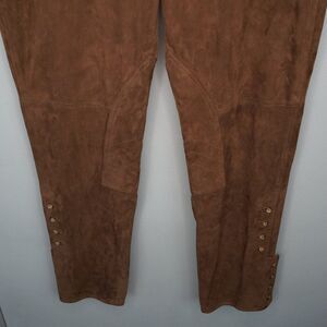 Lauren Ralph Lauren Straight-Leg Goat Suede Riding Pants in Brown sz 16. The tags were removed but the pants were never worn. Cut for a flattering high rise and a streamlined straight-leg silhouette, these ankle pants from Lauren Ralph Lauren are artfully crafted with stretch-infused goat suede. Knee patches and signature horn-effect buttons at the cuffs amp up their luxe character.