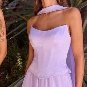 New Lavender Strapless A-Line Bridesmaid Chiffon Dress w/ Matching Scarf CD386