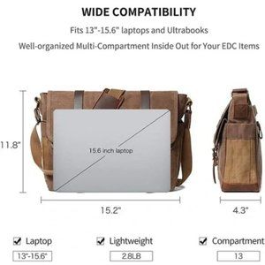 New Leather / Canvas Laptop Computer Bag Briefcase