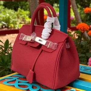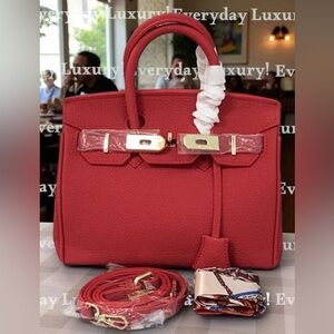 Chic and stylish red handbag perfect for any occasion. Elevate your outfit with this versatile accessory.Removable crossbody strap.Comes with dust bag,lock and key and scarf.Gold toned hardware.Interior has slip and zip pocket.Dual handles.