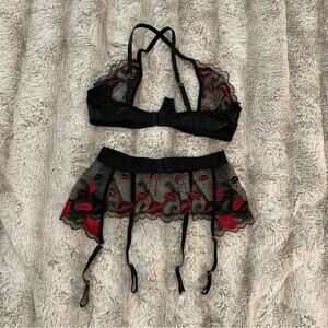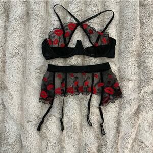 New Leg Avenue Kisses Black & Red Lingerie Garter Set