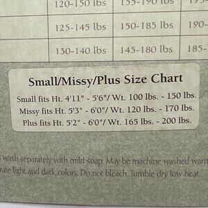Size PLUS which fits height 5' 2"-6'0"/weight 165-200 lbs.