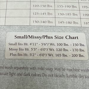 Size PLUS which fits height 5' 2"-6'0"/weight 165-200 lbs.