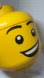 Fun and functional large Lego storage head. Bright yellow with a smiling face. Perfect for organizing toys.