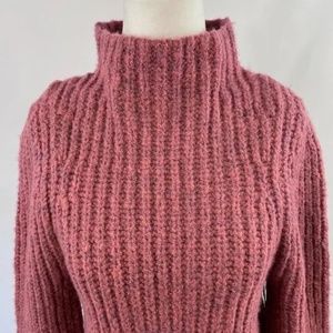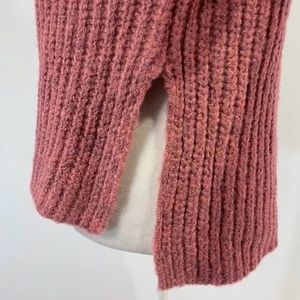 New Leith Chunky Knit Mock Neck Side Slit Sweater Raspberry Pink Size Small