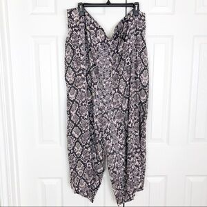 New with tags plus size wide leg cropped pants in gray snake print. Elastic on back half of waist band and zip closure on the side. Please see photos for measurements and additional details. 💕
