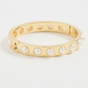 New Lele Sadoughi Bubble Hinged Gold Pearl Cuff Bracelet NWT