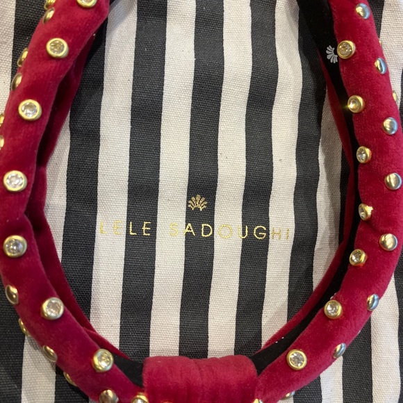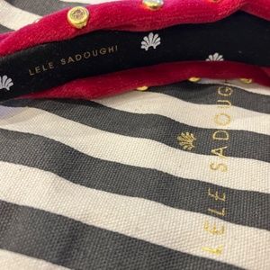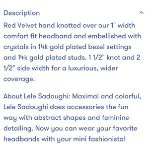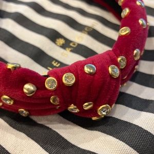 New Lele Sadoughi Red Gold Petite Velvet Gift idea Crystal Studded Knot Headband
