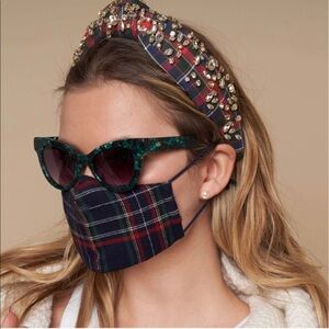 Set of three reusable face masks including an embroidered floral print, red and white buffalo check with heat stamp pearls, and classic tartan print. All feature a contour fit, two-layer design, super soft t-shirt lining, adjustable elastic ear straps, and an opening for a filter pocket (filter not included).