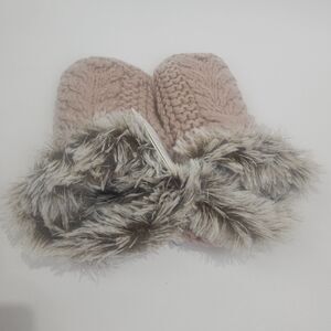New Lemon Hand Chunky Knit Rose Pink Slipper Socks Sz S/M Cozy Soft Faux Fur