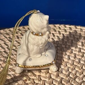 New Lenox Razzle Dazzle Cat Porcelain White With Gold Rhinestones Ornament
