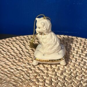 Lenox Handpainted Razzle Dazzle Cat Porcelain White With Gold Rhinestones Christmas Ornament