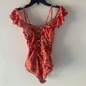 New Leonisa Orange Floral Off-Shoulder Ruffle One Piece Swimsuit 37747