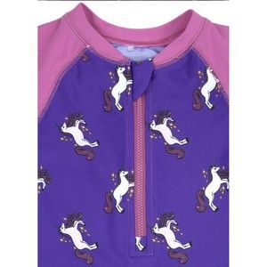 New Leveret Pink/Purple Unicorn Zip-Front Raglan One-Piece Rashguard 18-24 Month