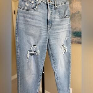 Washed and never worn. In excellent condition. Women’s size 27x27 in a distressed mom jean style. 5 pockets with a zipper fly and button closure. Super stretchy.