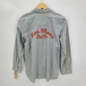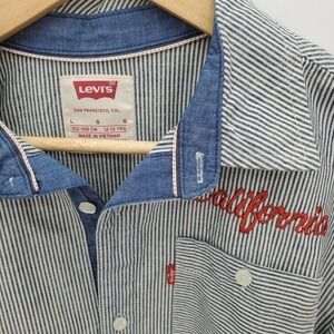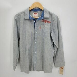 New Levis Boys Button Front Shirt Stripes Embroidered Size Large 12-13 Yrs